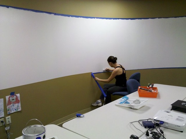 We just received our Idea Paint that we are going to put on one of the walls in our new workout room. This reminded me of when we painted the main conference room in the office building I worked in.  It was a big conference room with 2 little white boards that always had “Do Not Erase” written on them and a silly little paper easel. So I did some research and here is what we did.