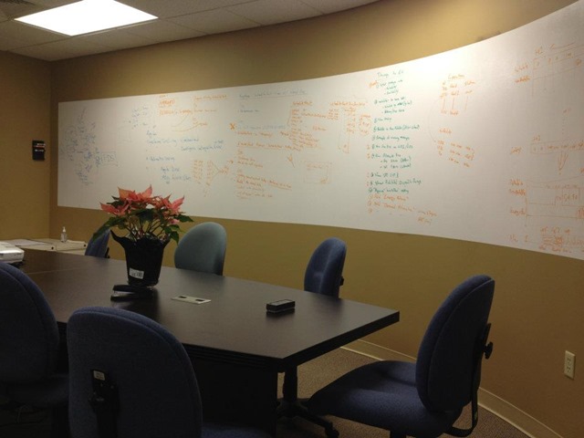 Once done, it was a giant white board!  Couldn’t wait to put up my process flow diagrams on it.